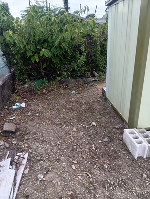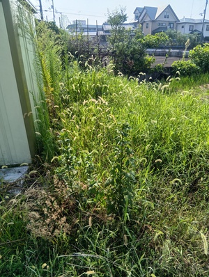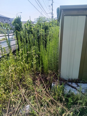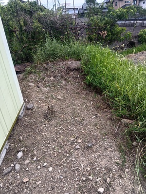 倉庫の周りを約2メートルの範囲で草抜きをしました。